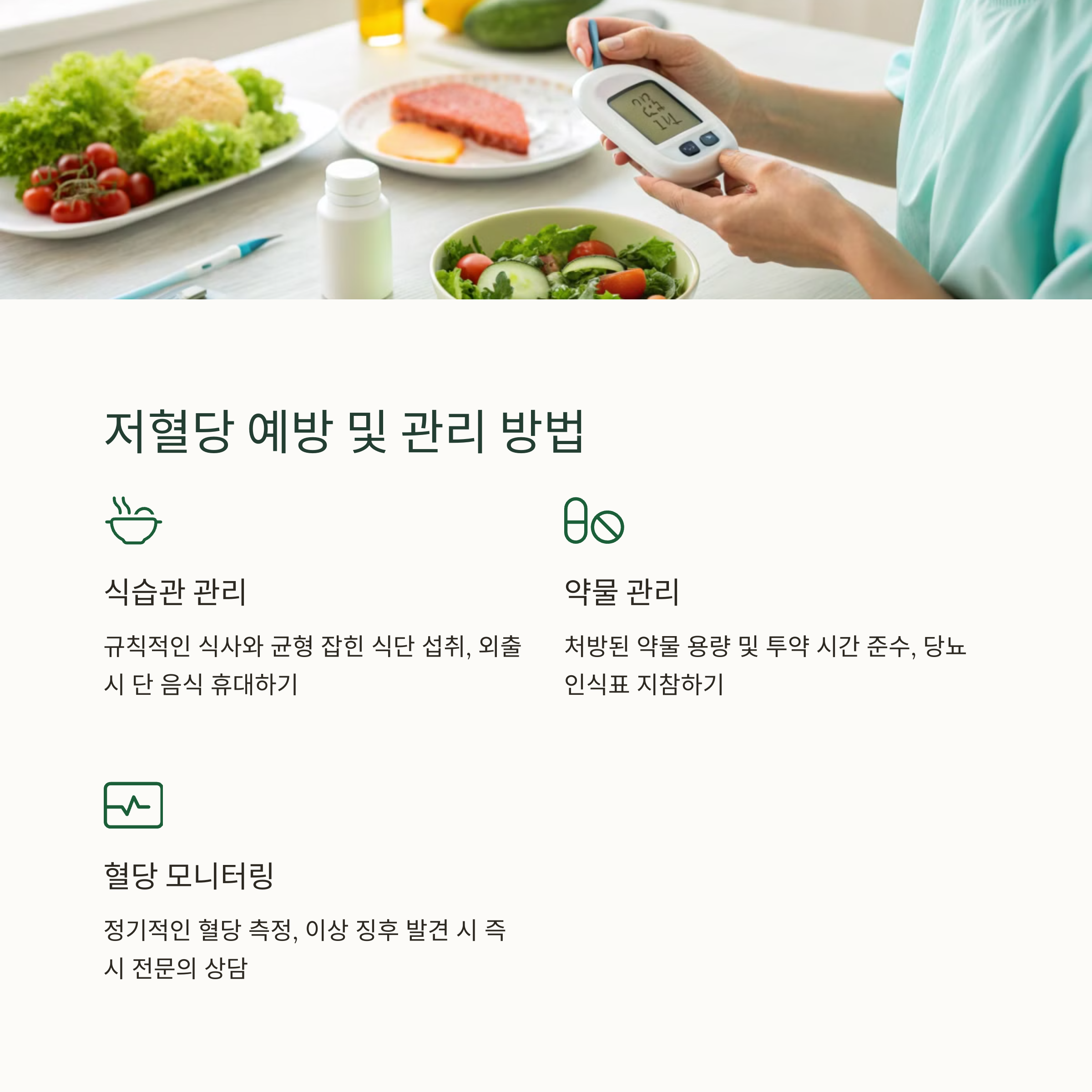 저혈당을 예방하고 관리하기 위해서는 다음과 같은 노력이 필요합니다.